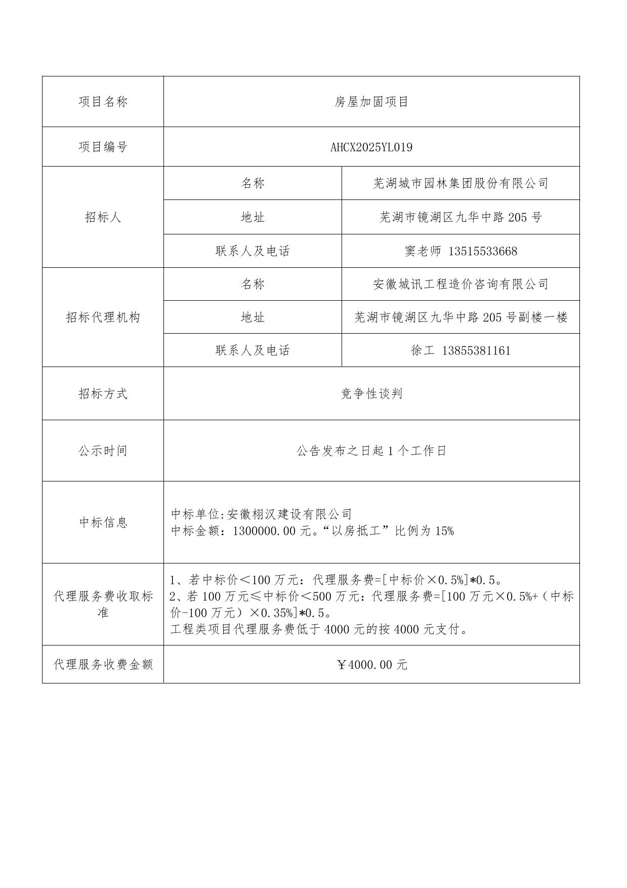 房屋加固項目成交結(jié)果公告