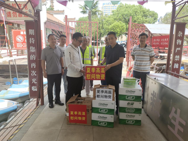夏日炎炎,熱浪襲人。7月16日下午,帶著集團對奮戰(zhàn)在高溫一線職工的深切關懷與牽掛,集團領導班子夏登彬、岳雷、盧夢汀一行,頂烈日、冒酷暑,先后深入鏡湖公園游船碼頭、赭山公園動物園、神山公園及汀棠公園等一線崗位,開展夏季高溫慰問活動,并對各公園水域的防溺水安全工作進行了重點檢查。