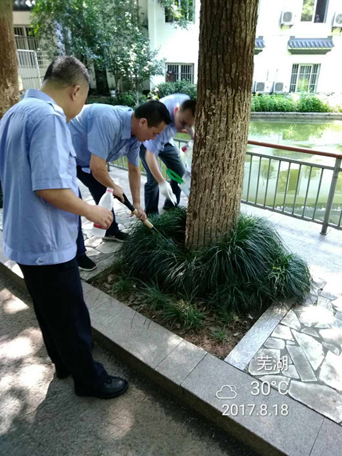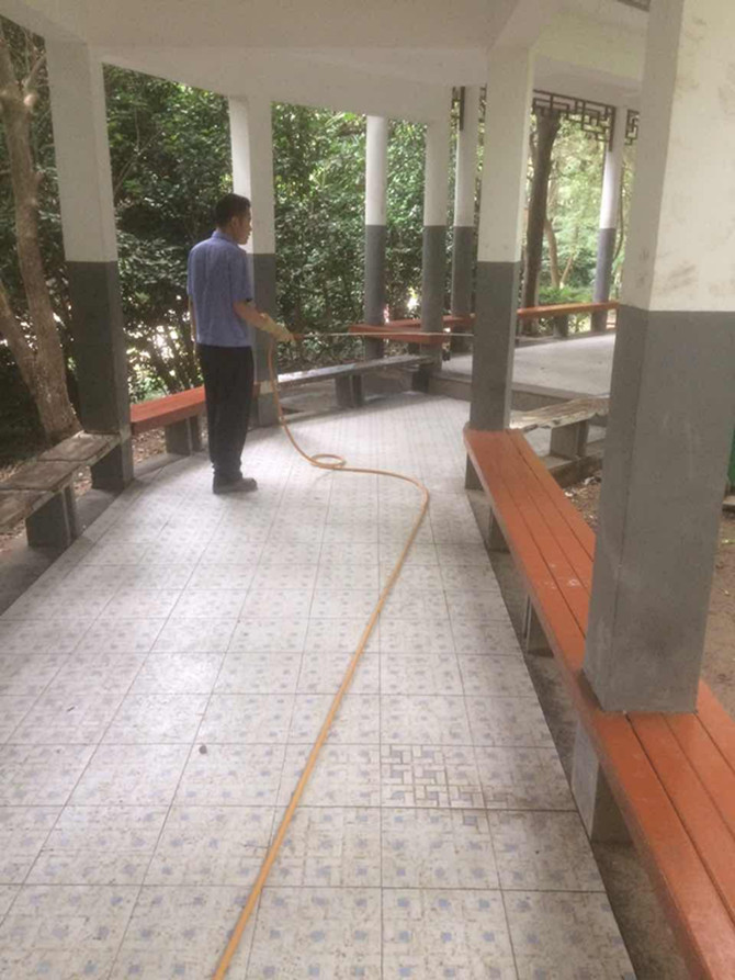 白蟻防治所工作人員到達(dá)現(xiàn)場后,告訴大家,近期受天氣影響,白蟻活動頻繁,必須立即對白蟻進行施藥處理,施藥后,保潔及時對地面殘留的藥物進行沖洗。隨后,白蟻防治所工作人員檢查了公園其它地方,發(fā)現(xiàn)了有少量白蟻,于是工作人員立即在樹根下埋誘餌包進行白蟻防治,并表示9月份將對公園白蟻防治情況進行復(fù)查。