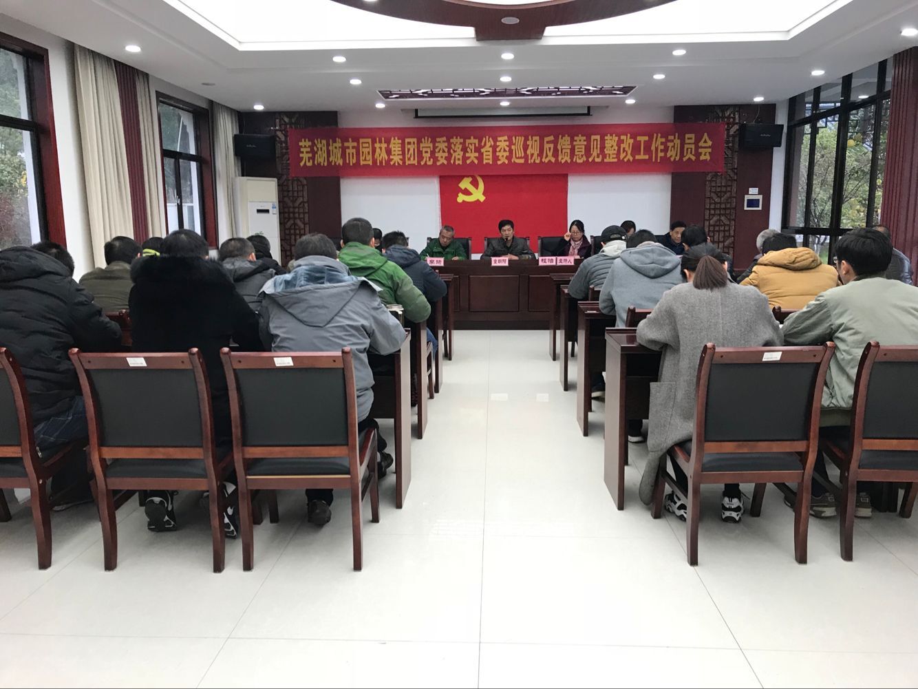 會(huì)上,黨委副書記程怡同志宣讀了《蕪湖城市園林集團(tuán)黨委落實(shí)省委第一巡視組反饋意見(jiàn)整改方案》。隨后,園林集團(tuán)黨委書記,董事長(zhǎng)兼總經(jīng)理童朝陽(yáng)同志傳達(dá)了市委及市財(cái)政局(國(guó)資委)黨委落實(shí)省委巡視反饋意見(jiàn)整改工作動(dòng)員會(huì)的主要精神和要求,并就園林集團(tuán)黨委落實(shí)省委巡視反饋意見(jiàn)整改工作提出具體工作要求。