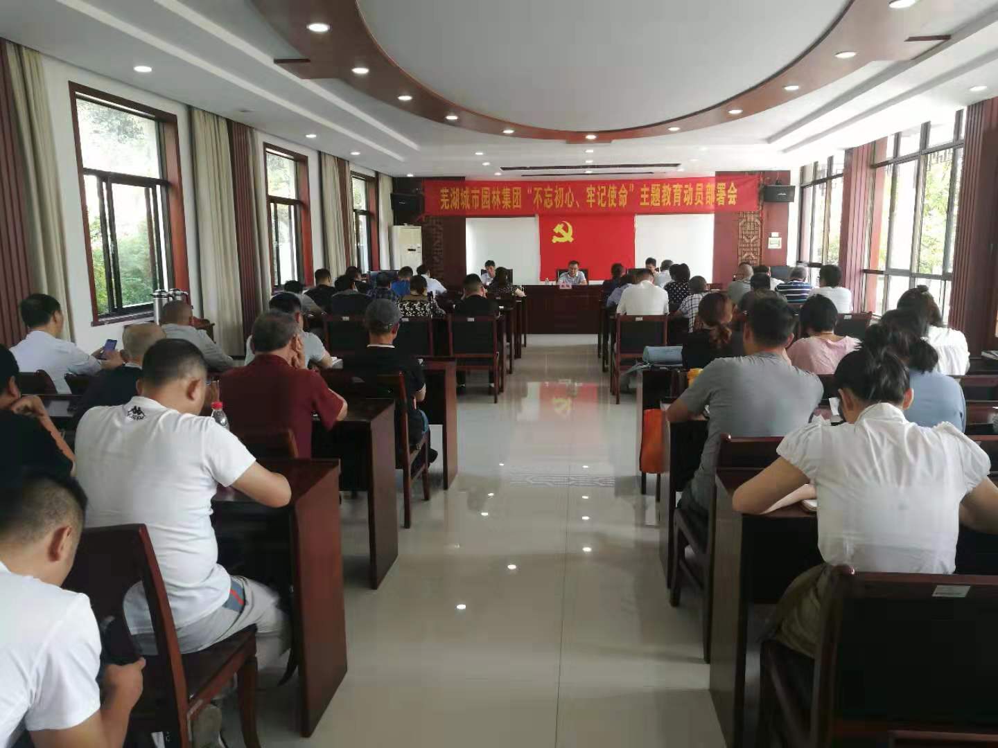 2019年9月24日上午,蕪湖城市園林集團召開“不忘初心、牢記使命”主題教育動員會,對集團開展主題教育進行安排部署。集團全體黨員、中層以上干部參加會議,市國資委第二巡回指導組組長、市國資委黨委委員、副主任朱毅到會指導。會議由園林集團黨委書記、董事長兼總經(jīng)理童朝陽主持并作動員報告。