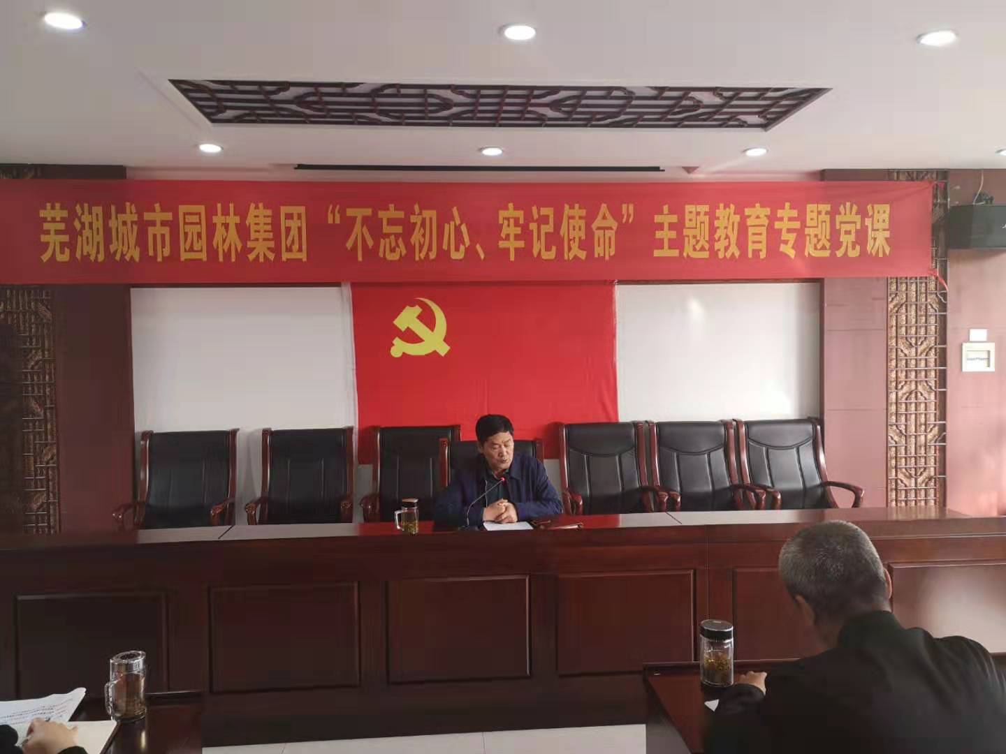 • 10月29日下午,園林集團(tuán)召開“不忘初心、牢記使命”主題教育專題黨課,集團(tuán)公司全體黨員參加會議,集團(tuán)黨委書記、董事長兼總經(jīng)理童朝陽同志主持會議