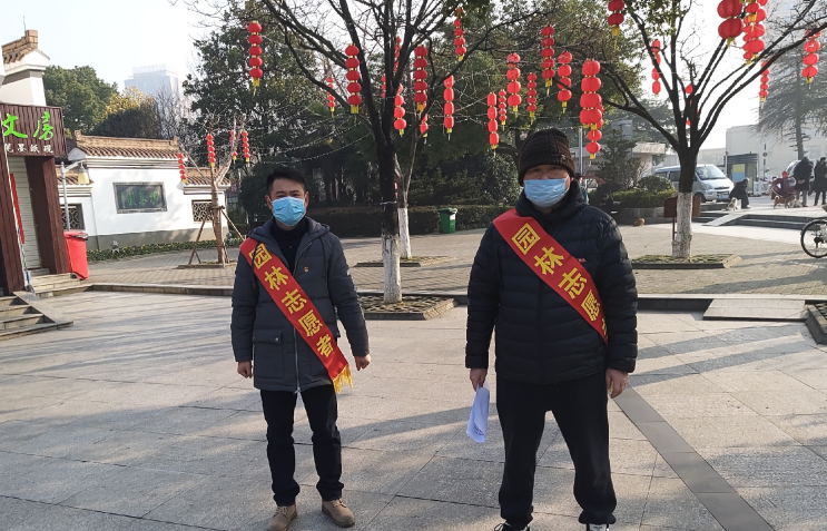 3、自新年假期起,藍綠支部組織黨員志愿者在鏡湖公園和九蓮塘公園值守,對市民進行勸導和防疫知識宣傳。