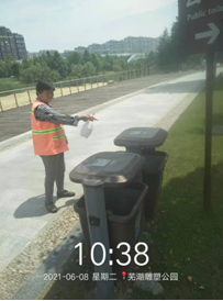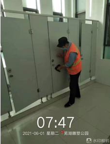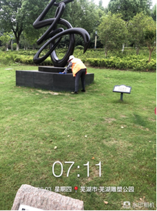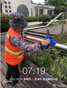 由于園內(nèi)游客眾多,從而對(duì)于衛(wèi)生保潔的要求也同樣變得更高,為了保障“七一”前后公園的環(huán)境衛(wèi)生和游客安全,我們及時(shí)對(duì)紅磚路面進(jìn)行了除青苔等防滑處理,園內(nèi)的公共座位、扶手、垃圾桶等均安排人員進(jìn)行擦拭保持干凈整潔;公園環(huán)道路面、公共游樂(lè)場(chǎng)所的邊邊角角以及高使用率的公廁,我們均安排保潔人員按部就班每天定時(shí)清理,高標(biāo)準(zhǔn)、嚴(yán)要求。