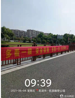 同時(shí),結(jié)合“全國(guó)安全生產(chǎn)月”活動(dòng),我們利用公園的有效設(shè)備、區(qū)域?qū)κ忻裼慰瓦M(jìn)行安全文化宣傳;對(duì)管理用房、公共區(qū)域的用電做了安全檢查,防火設(shè)備按標(biāo)準(zhǔn)要求配備;山林區(qū)域的防火工作也同時(shí)安排進(jìn)每日工作流程,定時(shí)安排人員巡山檢查,排除山林火災(zāi)隱患。