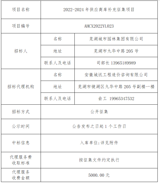 2022-2024年供應(yīng)商庫補(bǔ)充征集項(xiàng)目中標(biāo)公告