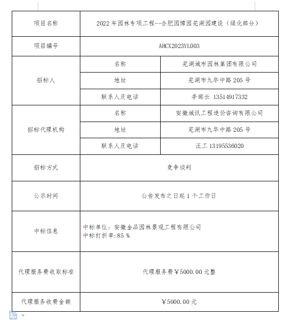 2022年園林專項(xiàng)工程--合肥園博園蕪湖園建設(shè)(綠化部分)中標(biāo)結(jié)果公示