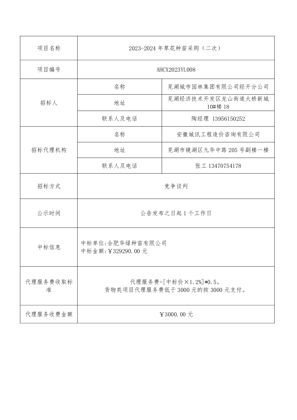 2023-2024年草花種苗采購(二次)中標結(jié)果公示