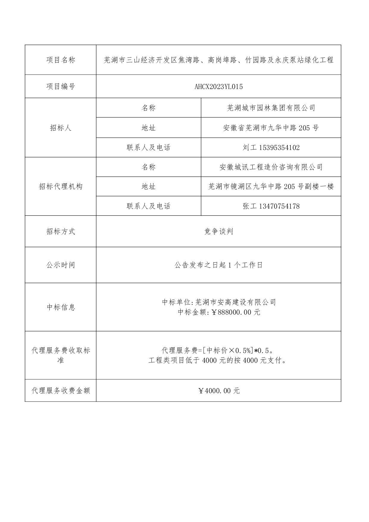 蕪湖市三山經(jīng)濟(jì)開發(fā)區(qū)焦灣路、高崗埠路、竹園路及永慶泵站綠化工程中標(biāo)結(jié)果公...