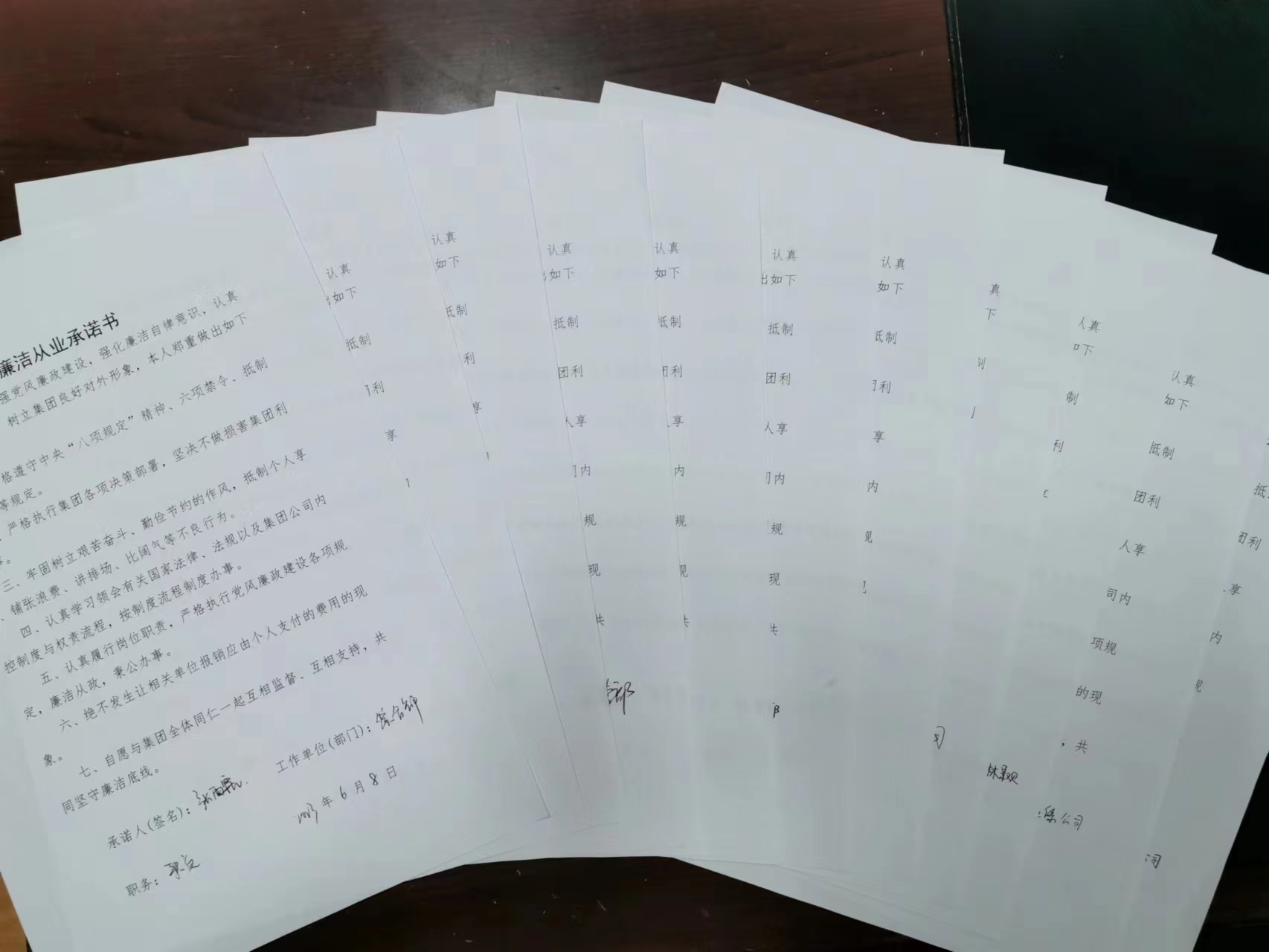 最后,新員工在《廉潔從業(yè)承諾書》上莊重地簽下自己的名字,表示自己會堅守廉潔的本心。集團為新員工發(fā)放了廉政教育手冊和廉潔主題鼠標墊,引導新員工在思想上、行為上時刻保持頭腦清醒,做到嚴于律己。