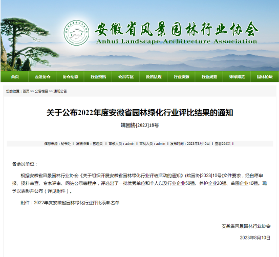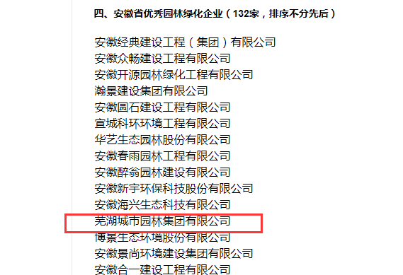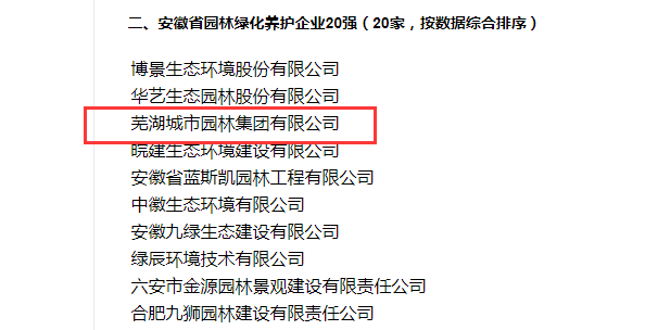 2023年8月10日,經(jīng)過(guò)自愿申報(bào)、材料初審、專家評(píng)審、信用篩查等程序,安徽省風(fēng)景園林行業(yè)協(xié)會(huì)開(kāi)展的安徽省園林綠化行業(yè)評(píng)比結(jié)果出爐,蕪湖城市園林集團(tuán)憑借強(qiáng)勁的綜合實(shí)力脫穎而出,分別榮獲2023年安徽省園林綠化養(yǎng)護(hù)企業(yè)20強(qiáng)(第3名),2023年安徽省園林綠化企業(yè)50強(qiáng)(第20名),2023年安徽省優(yōu)秀園林綠化企業(yè)和2023年安徽省優(yōu)秀養(yǎng)護(hù)企業(yè)四項(xiàng)企業(yè)榮譽(yù)。與此同時(shí),集團(tuán)夏登彬同志榮獲2023年安徽省優(yōu)秀企業(yè)經(jīng)理,王義強(qiáng)同志榮獲2023年安徽省優(yōu)秀項(xiàng)目經(jīng)理,陶俊、汪苑竹同志榮獲2023年安徽省優(yōu)秀工程師。