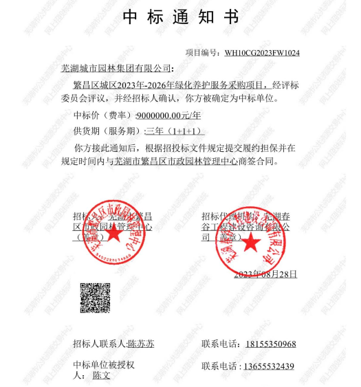• 園林集團(tuán)中標(biāo)繁昌區(qū)城區(qū)2023年-2026年綠化養(yǎng)護(hù)服務(wù)采購(gòu)項(xiàng)目