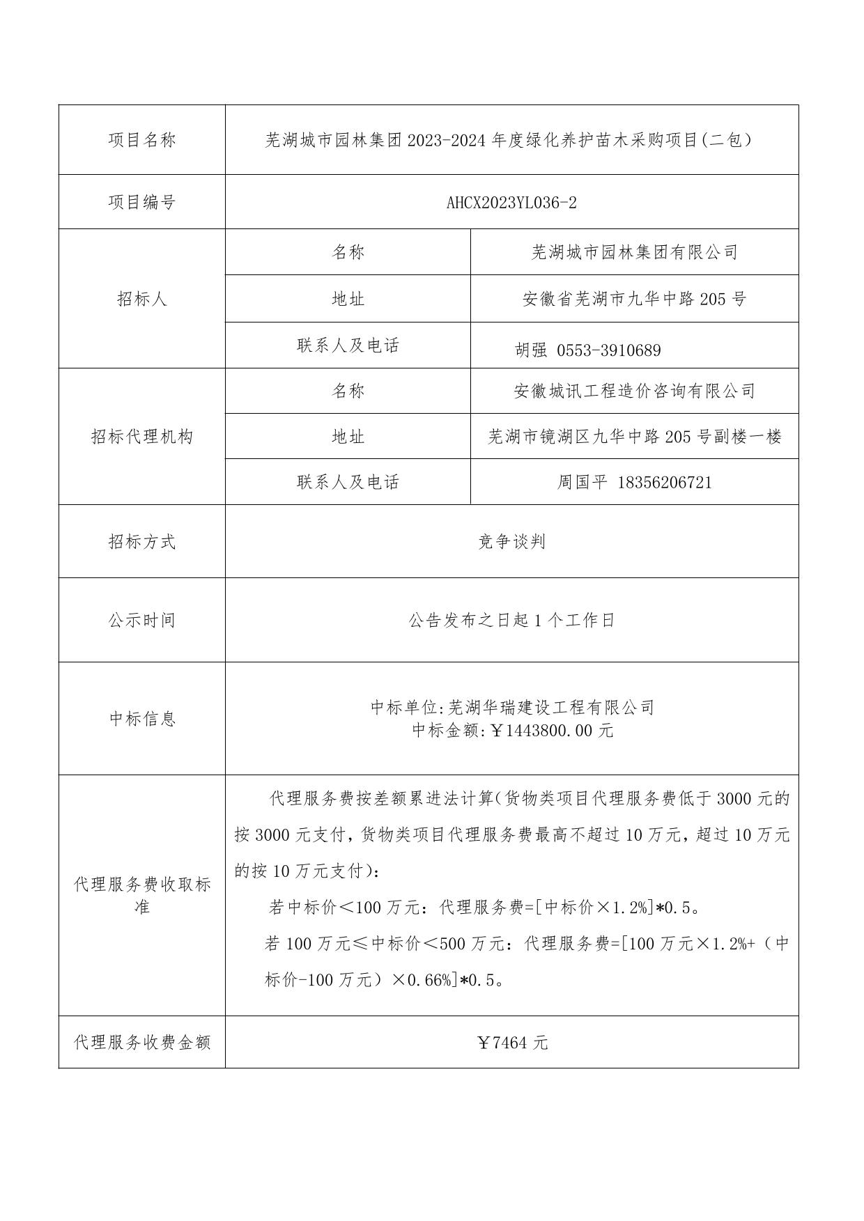 蕪湖城市園林集團(tuán)2023-2024年度綠化養(yǎng)護(hù)苗木采購項目(二包)中標(biāo)結(jié)