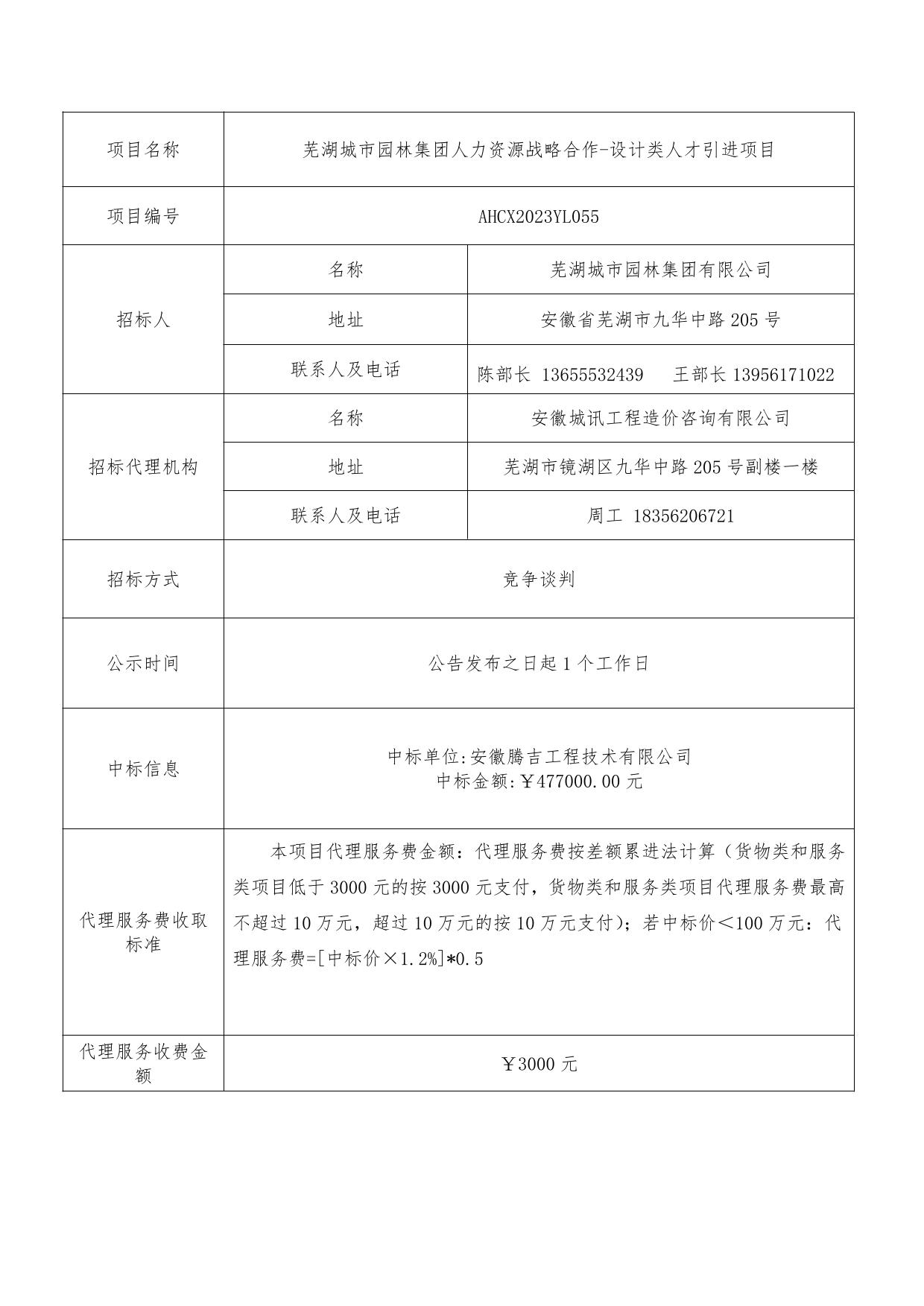 蕪湖城市園林集團人力資源戰(zhàn)略合作-設(shè)計類人才引進項目成交結(jié)果公告