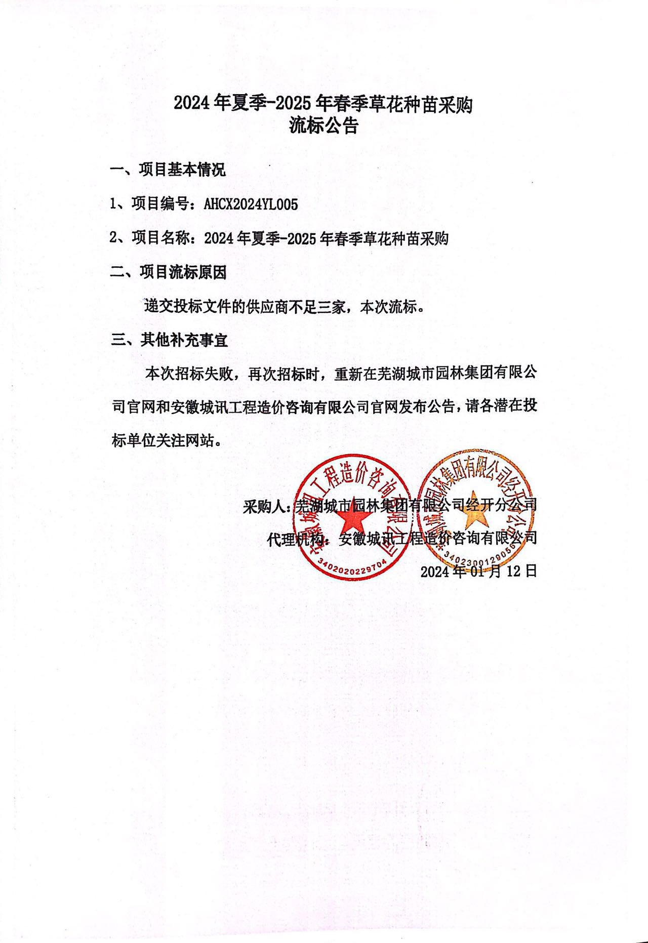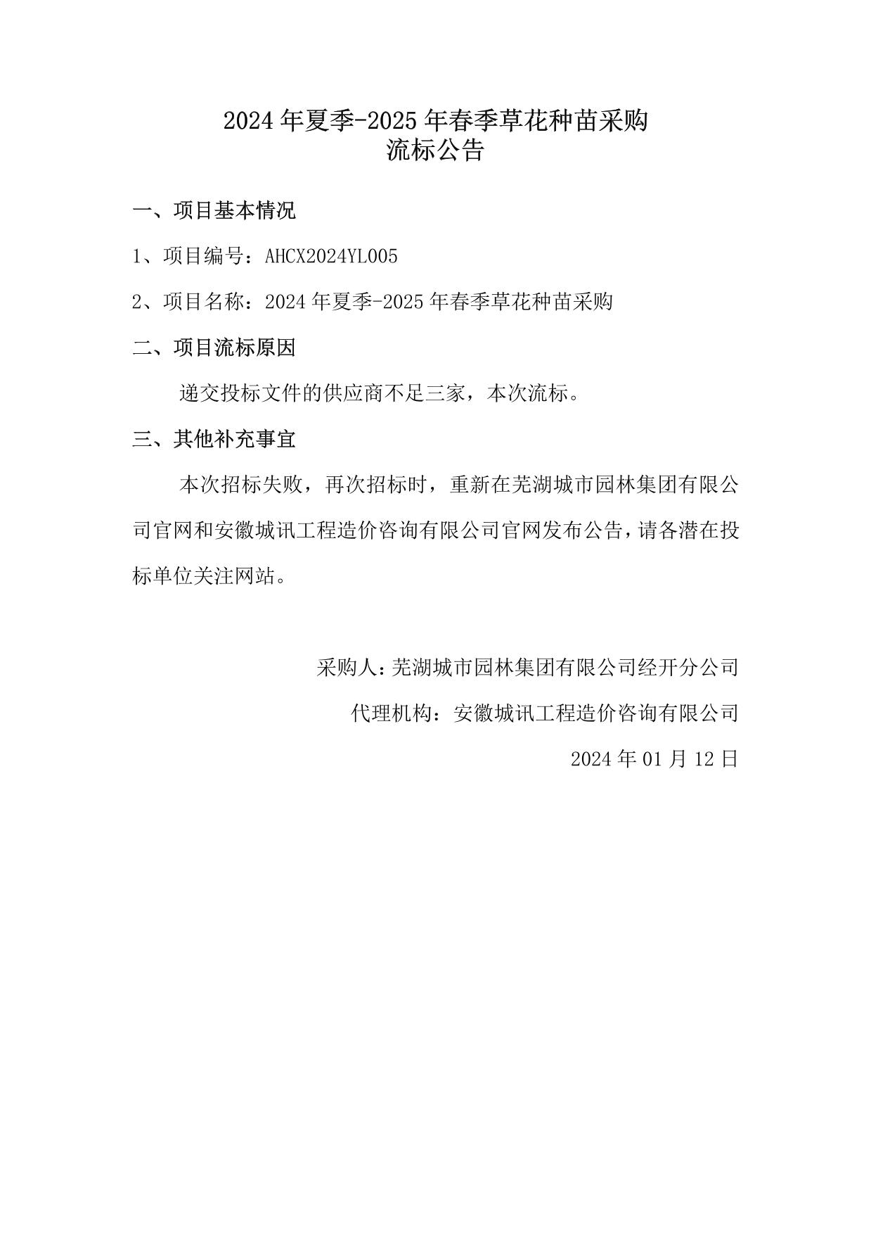 2024年夏季-2025年春季草花種苗采購(gòu)流標(biāo)公告