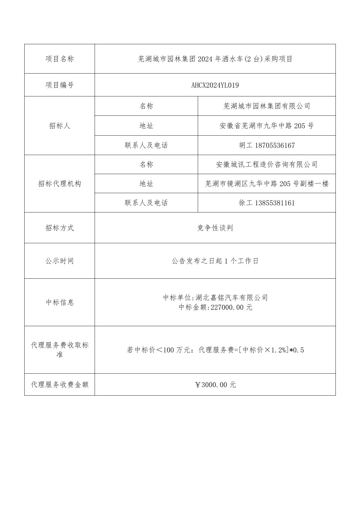 蕪湖城市園林集團(tuán)2024年灑水車(2臺(tái))采購項(xiàng)目成交結(jié)果公告