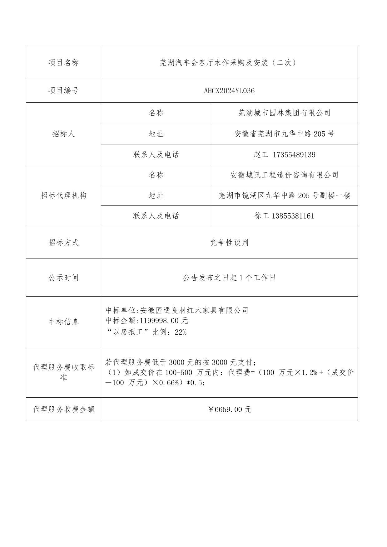 • 蕪湖汽車會(huì)客廳木作采購(gòu)及安裝(二次)中標(biāo)結(jié)果公告