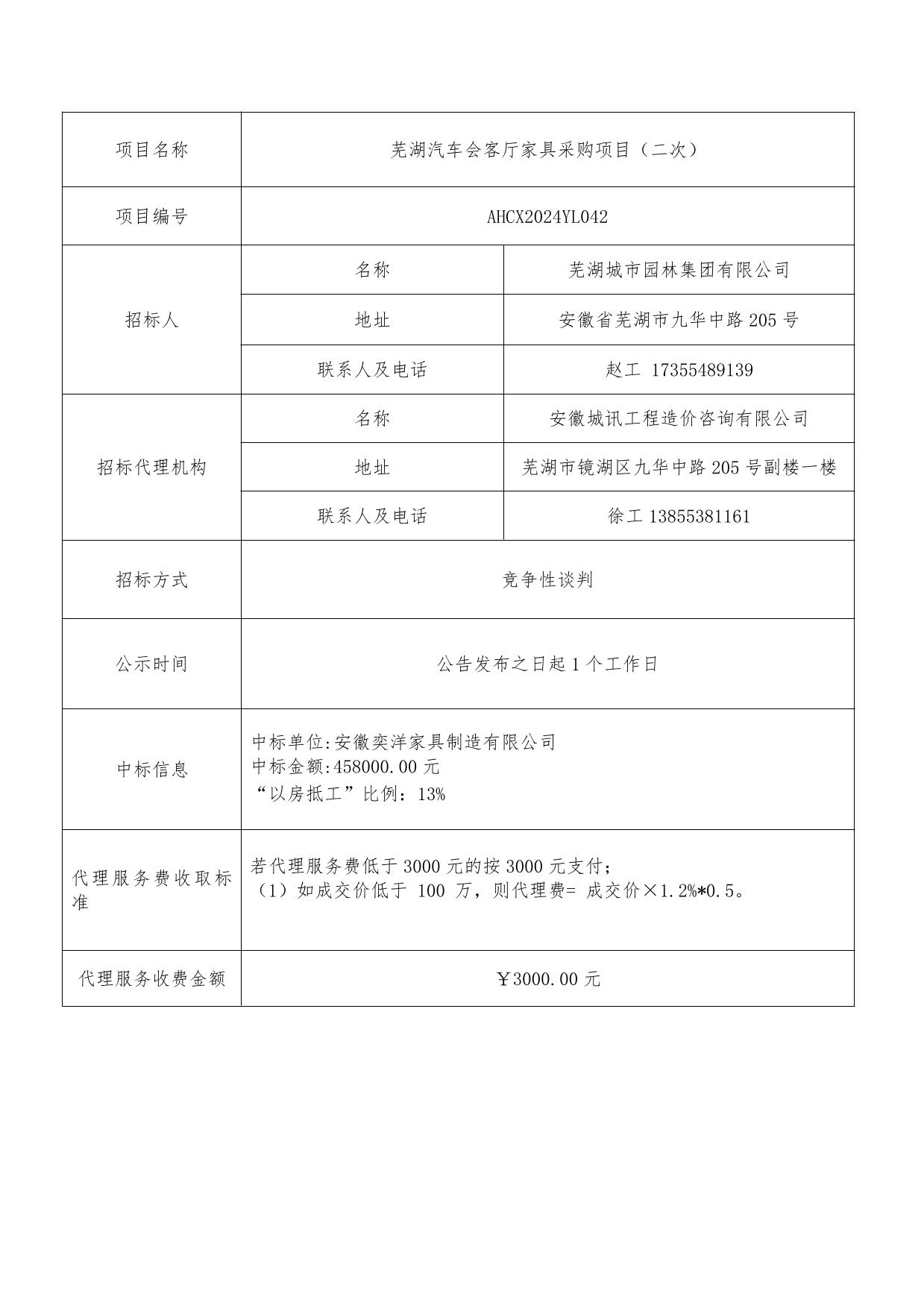 蕪湖汽車(chē)會(huì)客廳家具采購(gòu)項(xiàng)目(二次)成交結(jié)果公告